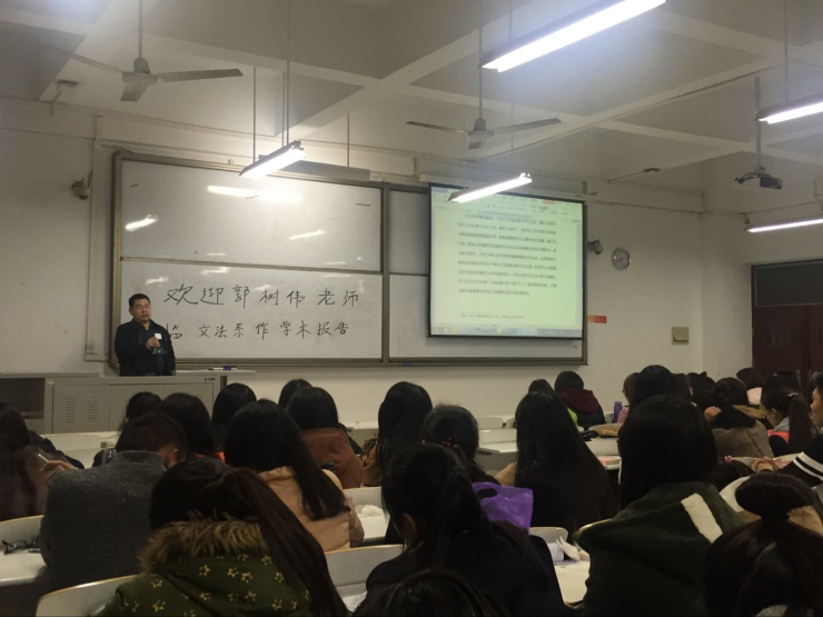 11月7日晚上6:30在道镕楼107,河南省社会科公司中原文化研究所副研究员郭树伟博士作《漫谈儒家的劝学思想》的学术报告,赵严俊老师主持,相关专业老师及百余名学子聆听了报告。