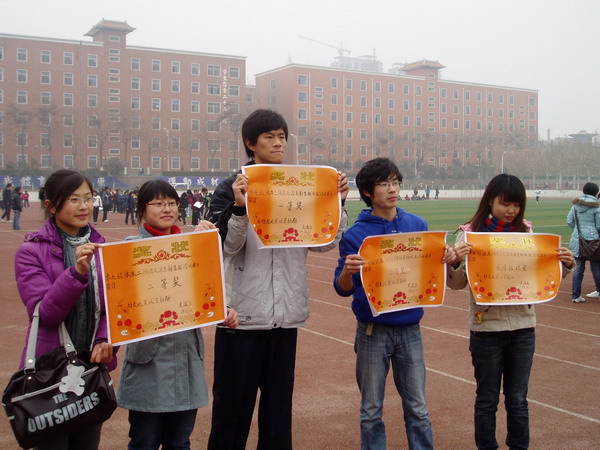 在接下来的趣味竞赛中,男生女生分两个方阵进行比赛。女生们一改平日的温文尔雅,主动向男生们发起了挑战。最终,44名女生组成的“巾帼队”以坚韧的毅力和顽强的精神战胜了24名男生组成的“须眉队”。