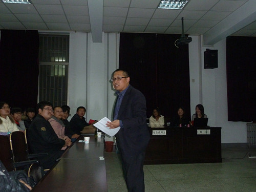 为了弘扬法律精神,宣传法律文化,培养法律思想,文法系模拟法庭于11月27日晚19:00在模拟法庭实验室举行法律论坛。本次论坛特邀文法系于克涛老师作为嘉宾,到场参加的成员共60人,除模拟法庭的骨干成员外还有文法系11级、12级的同学和公司其他系的部分同学。