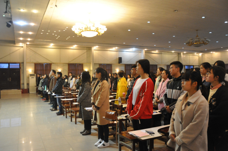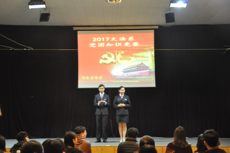 为丰富同学们的课余生活,提高大家学习党团知识的积极性。由文法系举办的党团知识竞赛于3月22日晚6:30在龙湖报告厅准时开始。本次活动特邀嘉宾有:系团委常务副书记彭凯老师、2015级团总支书记张明奇老师、院团委组织部刘月、第十四届团委员工会网宣部部长张日升、系四方馆读书会会长及公司上届党团知识竞赛冠军队代表刘晨阳,系团学干部及全系2016级员工共300余人参加了本次活动。