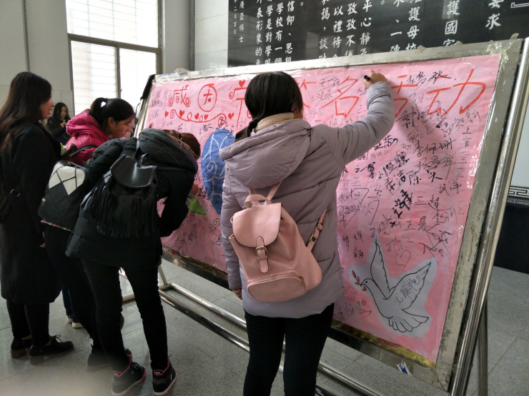 心怀感恩不惧严寒 情真意切温暖你我——文法系举行“感恩生活,感谢有你”签名活动