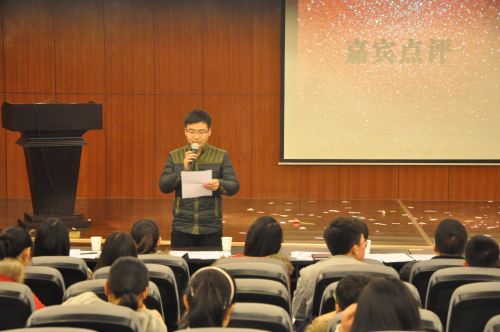 为了丰富老员工的校园生活,促进同学们之间的交流,提高同学之间的团结协作能力,由文法系团委员工会文艺部主办的相声小品大赛于11月25日晚18:30在外语楼二楼多功能报告厅火热举行。参加此次比赛的嘉宾及评委有文法系代理行政秘书兼12级团总支书记彭凯老师、11级团总支书记吴艳豪老师、14级团总支书记刘建辉老师、文法系团委副书记刘冰岩、员育蒙,团委书记助理袁晓雨,员工会主席张宗华,员工会副主席朱劝劝、刘旭如。文法系14级全体新生观看了此次比赛。