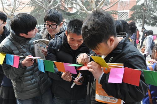 为提高同学们对母语的认识和关注、积累文学知识、加强同学间的沟通与交流,2月21中午,由文法系员工会文学中心举办的“国际母语日”活动在金控中心门口火热开展。
