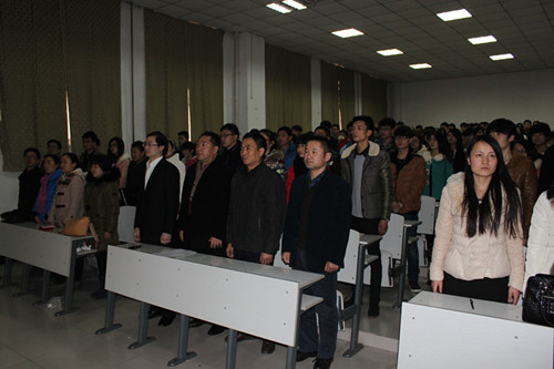 最后,文法系党总支书记张朝阳同志做了讲话。首先他对入党的同学表示祝贺,随后提出希望,希望党员同学一是要坚定信念,牢记使命;二是要加强学习,不断提升自身素质;三是埋头苦干,勇于创新;四是发挥先锋模范作用,为党旗添辉。同时对入党积极分子提出三点要求:首先,要珍惜上党课的学习机会,认真学习党的基本知识;其次,张朝阳书记强调要正确对待入党,时刻端正自己的入党动机;第三,学好理论知识的同时,应加强理论与实践的联系,充分发挥积极分子的模范带头作用,争取早日加入我们伟大的党组织。