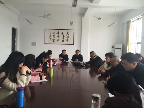 3月17日下午2点,文法系在系会议室再次召开专题会议进一步落实教学评估工作。系主任段丰乐、书记杨明志、教学秘书曹丹丹、行政秘书郑玲玲、文学教研室乐铄主任、法学教研室徐静主任及全体教职工参加了此次会议。