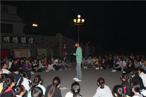 九月的天气忽冷忽热,虽然夜晚已感到丝丝寒意,但大一新生仍坚持军训,在教官的指挥下,一丝不苟地进行训练。在新生们军训休息的时间,系团学会为新生带来了精彩的演唱和相声等节目。社联理事长兼员工会副主席李亚宁、外联部部长付芳琳及青志协社长兼外联部副部长宋洋为大家带来了精心准备的相声,文艺部副部长刘晨曦唱了一首深情的《十年》。现场气氛热烈,教官也积极地加入到活动中,文法系团学会全体成员和大一新生一起拉歌,现场气氛十分融洽,欢声笑语不断,大一新生也展示出了自己不凡的才艺,有的同学深情演唱,有的同学和大家猜起了谜语,员工会主席范艳广为大家带来了一首激励人心的《Everyone is No.1》让现场的气氛一度的活跃。