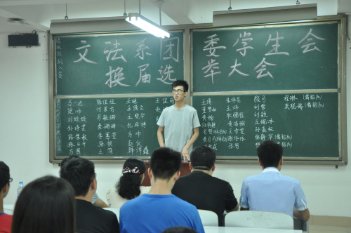 为进一步推进文法系团委员工会干部队伍的健康发展,再创文法系团学工作新辉煌。文法系分别于6月16日晚7点和6月18日下午2:40在商管楼418和系会议室举行了文法系团委员工会换届选举活动。文法系行政秘书兼团委书记郑玲玲老师、团委常务副书记彭凯老师、14级团总支书记刘建辉老师等出席了此次大会。
