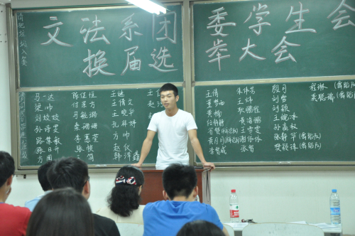 首先,由主持人张宗华致开场词,接着选举正式开始。参加竞选的同学们依次上台进行了三分钟的演讲。他们十分珍惜这次机会,以饱含热情的演讲阐述了自己所具备的的工作能力以及愿意为同学们服务的意愿,认真的提出对未来的工作规划,以积极的态度表达了自己愿意为团学会服务和继续留在团学会的决心与信心,赢得阵阵掌声。由郑玲玲老师、彭凯老师、刘建辉老师以及主席团全体成员和部长对候选人进行投票。
