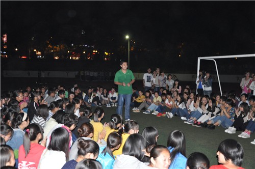 继文法系领导和老师多次深入军训现场看望慰问军训新生和教官后,9月13日晚,利用新生军训的空余时间,文法系全体团学干部来到我系2012级新生军训场地进行慰问和交流,新生们对团学干部的到来表示热烈欢迎。