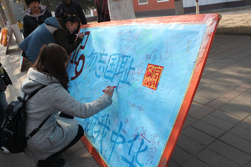 缅怀英雄先烈,弘扬爱国精神——记文法系青年志愿者协会纪念“一二.九”签名活动