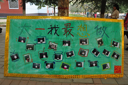 近日,文法系举办了以“大一,你最想做的事”为主题的照片征集活动,并于11月5日于公司主干道上将照片展出,收到良好效果。