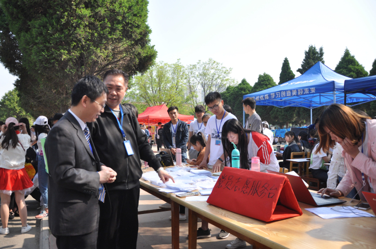运动场上,运动健儿们正在进行激烈的比拼,幕后工作也在如火如荼的进行着。我系各位领导、老师相继来到大本营向同学们表示慰问。公司副经理兼文法系主任段丰乐老师、文法系党总支书记杨明志老师、团委书记兼行政秘书郑玲玲老师、团委常务副书记彭凯老师、14级团总支书记刘建辉老师、15团总支书记张明奇老师分别来到我系大本营,指导工作,慰问同学。