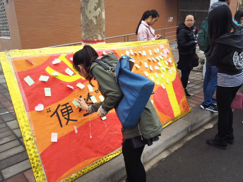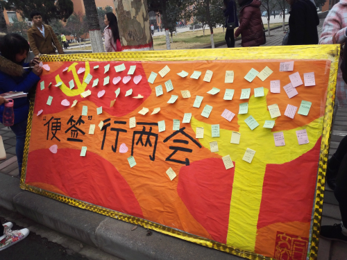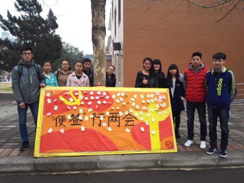 关注国家大事 加强理论学习——记文法系“便签行两会”活动