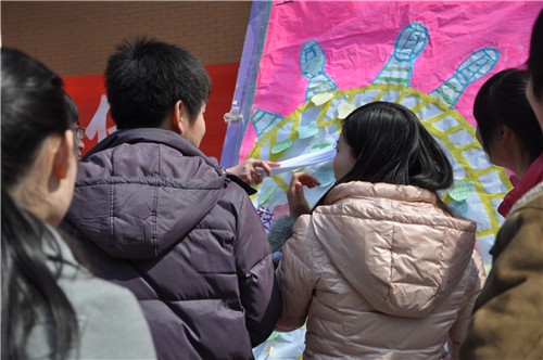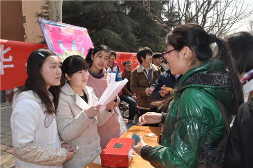 在“女生节”到来之际,3月7日中午,文法系团委员工会女生部在金控中心门口举办了一场别开生面的“星语心愿之携手我们的青春”活动,活动以关爱女生、记录青春、宣传健康小知识、促进同学们之间的交流为目的。