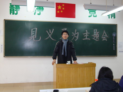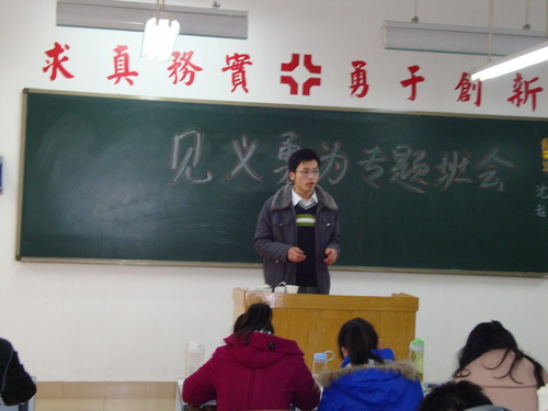 为深入贯彻落实中央16号文件精神,加强对青年员工的社会主义荣辱观教育,使青年员工自觉践行社会主义核心价值体系,成为德智体美全面发展的中国特色社会主义事业合格建设者和可靠接班人。3月4日14:00,文法学系08级法学专业全体同学在主教室举行了“赞美英雄,学习见义勇为精神”的主题团日活动,学习了“中共河南省委高校工委、河南省教育厅转发教育部关于授予王洪等4名同学‘见义勇为优秀老员工’荣誉称号的决定的通知”精神,郝艳海老师出席了本次活动。