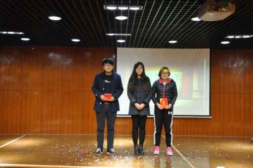 经过紧张激烈的角逐,文艺部推荐的《打劫》夺得本次比赛的冠军,15法本班《大家都在忙》和办公室推荐的《我是演员之偶像天团》获得二等奖,体育部的《祝你幸福》、15新闻班的《碰瓷》和外联部推荐的《甄嬛后传》获得三等奖,随后由嘉宾为其颁奖并合影留念。最后,员工会主席张文对节目进行了点评,她肯定了大家对活动的付出但同时也指出了本次比赛存在的问题和不足,希望大家能够吸取经验教训,将比赛办得越来越好。