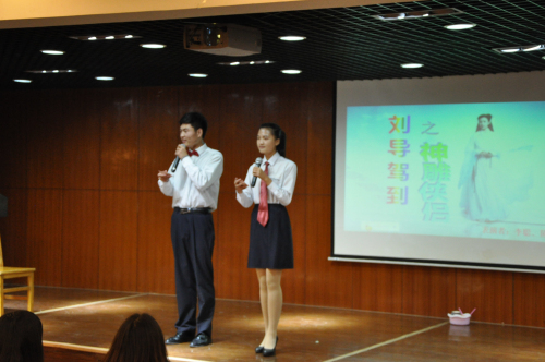首先,由主持人致开场白并对此次比赛的流程及细则向参赛选手及现场的观众作了详细的说明。接下来比赛正式开始,参赛节目内容丰富多彩,有幽默俏皮的夸张故事,有喜闻乐见的日常琐事,也有描绘多姿多彩的校园生活剧。比赛现场既紧张又活跃,各代表队都充分发挥了团队的协作能力,可谓是“八仙过海各显神通”,整场比赛高潮迭起,掌声不断,选手们的精彩表演使台下的观众为之喝彩。其中,由文艺部选送的小品《打劫》更以其高超演技,幽默的语言,将现场气氛推向高潮,各位选手的精彩表演赢得了一致好评。