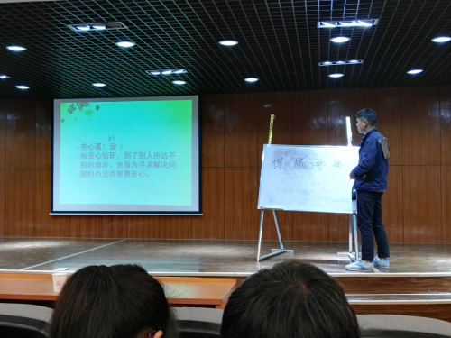 为了更好传承源远流长的中华优秀传统文化,丰富老员工的汉语文化知识,缓解学习压力放松紧张情绪,营造和谐美好的校园文化氛围,文法系于2016年4月12日晚6:30在外语楼2楼多功能报告厅举行了“汉字英雄”大赛。出席此次比赛的嘉宾有:文法系团委常务副书记彭凯老师,15级团总支书记张明奇老师,文法系团委员工会主席团及文学中心相关负责人。