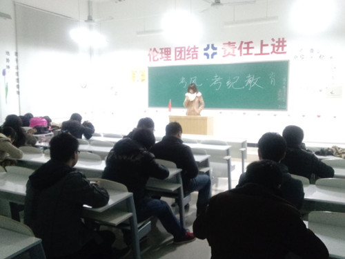 大学英语四六级考试即将举行,文法系10级团总支积极响应院系号召于12月19日在各班主教室召开以诚信教育为主题的大学英语四六级考试考前班会,此次班会由各班班长主持,辅导员郝艳海老师和全体同学均参加了本次主题班会。本次班会作为四六级考前考风考纪教育主题班会,目的是重申考试纪律,以树立诚信应考的良好考风,督促同学们以正确的态度对待考试,确保考试顺利进行。