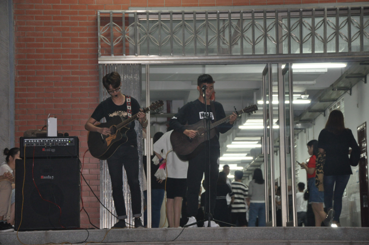 为了体现对小石器的关怀之情,每个部门都精心准备了节目。活动在团委组织部的舞蹈《夜上海》中拉开序幕,接着办公室选送的歌曲《明天你好》唱出了美好的希望和未来,赢得台下掌声不断。随后由文学中心改编的歌曲《文法欢迎你》更是展现出不一样的风采……一首首动情的歌曲,拉近了新老生之间的距离,也缓解了新生紧张的军训生活。最后,新老生共同高歌,回声嘹亮,本次活动在歌声和掌声中完美落下帷幕!