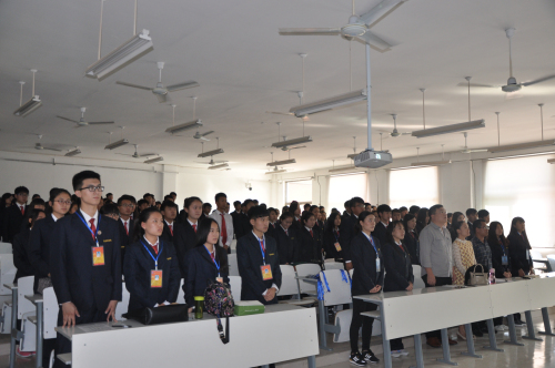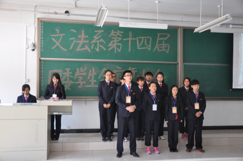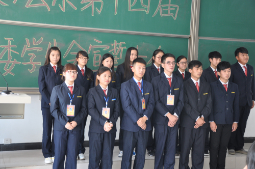 会议伊始,由主持人介绍到场嘉宾。之后,全体成员起立唱共青团团歌,随后由郑玲玲老师发表讲话,她对文法系团委员工会的工作给予了充分的肯定和支持,并督促大家更加积极地开展今后的工作,大家都受益匪浅。然后由文法系员工会主席张文作为员工会干部代表发表讲话,她对新一届团学会成员进行了耐心的指导,并希望在以后的工作中能够再接再厉,连创辉煌!接下来由各部门部长带领干事们上讲台一一做自我介绍,以便互相认识。各部门介绍完毕,由各分管主席分发工作证,并合影留念来记录这光荣的时刻。接下来由团委副书记张园园带领大家宣誓,以表达对员工会“全心全意为同学服务”的工作态度。最后,由张明奇老师做精彩总结,要求同学们努力提高自己,朝着更好的方向推动文法系的发展,至此大会全部结束。随后团学会全体成员在道镕楼大门前合影留念,标志着此次大会的圆满成功。