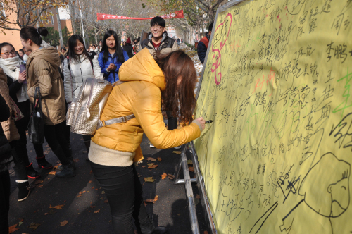 此次感恩签名活动,参与的同学加深了对感恩的认识和理解,传承了中华民族的美德,使人与人心灵的距离更加贴近,使这个寒冷的冬天不再寒冷。(供稿人: 文学中心 张彩凤)