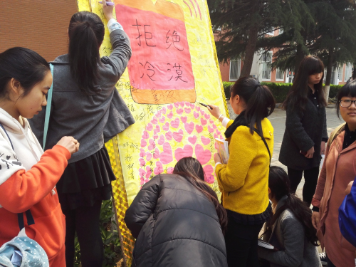 草长莺飞四月天,拒绝冷漠人心暖——文法系开展关爱心灵之“拒绝冷漠”签名活动