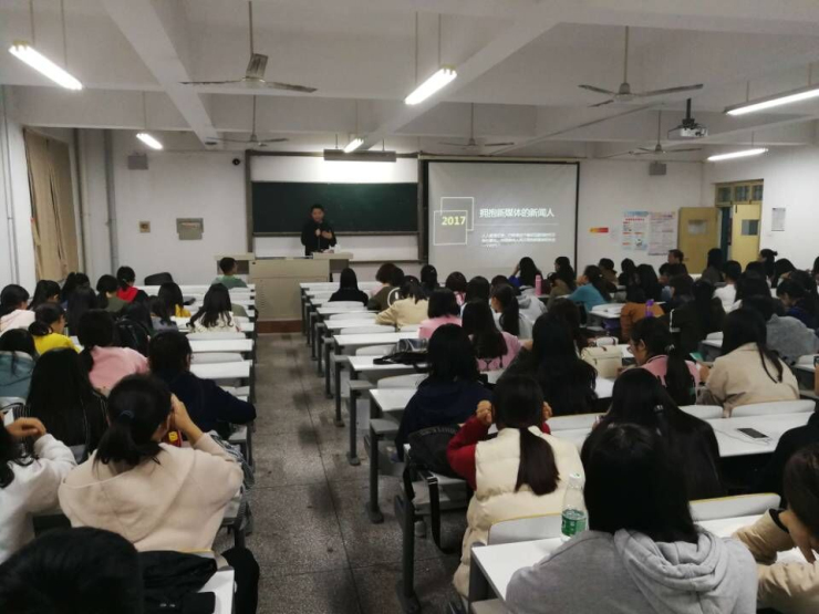 王锋老师是带领公司新媒体创造出了校微信公众号占据全国第四十三位、微博全国第八的新媒体工作实力派干将。报告中,王锋老师用他从事新媒体工作的丰富经验和一系列精准的数据、图表及事例,分别分析了传统媒体和新媒体的特点及发展态势,他结合公司官方网站、国内外知名网站等实例总结出新媒体写作的基本要素、新媒体人应该具备的基本素养以及运营新媒体的工作方法。另外,王锋老师结合实际,对一线城市新媒体方面的就业方向、薪资水平等方面进行分析,带同学们见证了新媒体的发展,使同学们在新媒体与传统媒体的对比中,切实感受到了新媒体的魅力。