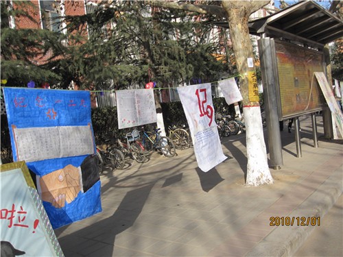 应院团委及系团委号召,我系09级、10级学子们积极参与本次手抄报设计展活动,同学们参加活动的热情高涨,纷纷收集资料和素材,亲手制作手抄报。自立路旁,悬挂着一份份员工们精心制作的以纪念“一二 九”为主题的手抄报,引得许多过往的同学们驻足观赏。这些手抄报,独具风格,色调各异。有的色调鲜明,用色大胆前卫;有的布局沉着,极其稳重大气;有的构思奇巧,妙采古今精粹。放眼望去,同学们在细致浏览手抄报之余,更是在积极主动地探讨交流“一二 九”运动的相关知识。虽说时值冬日清晨,现场却被一派如春般的温暖气氛所包围。