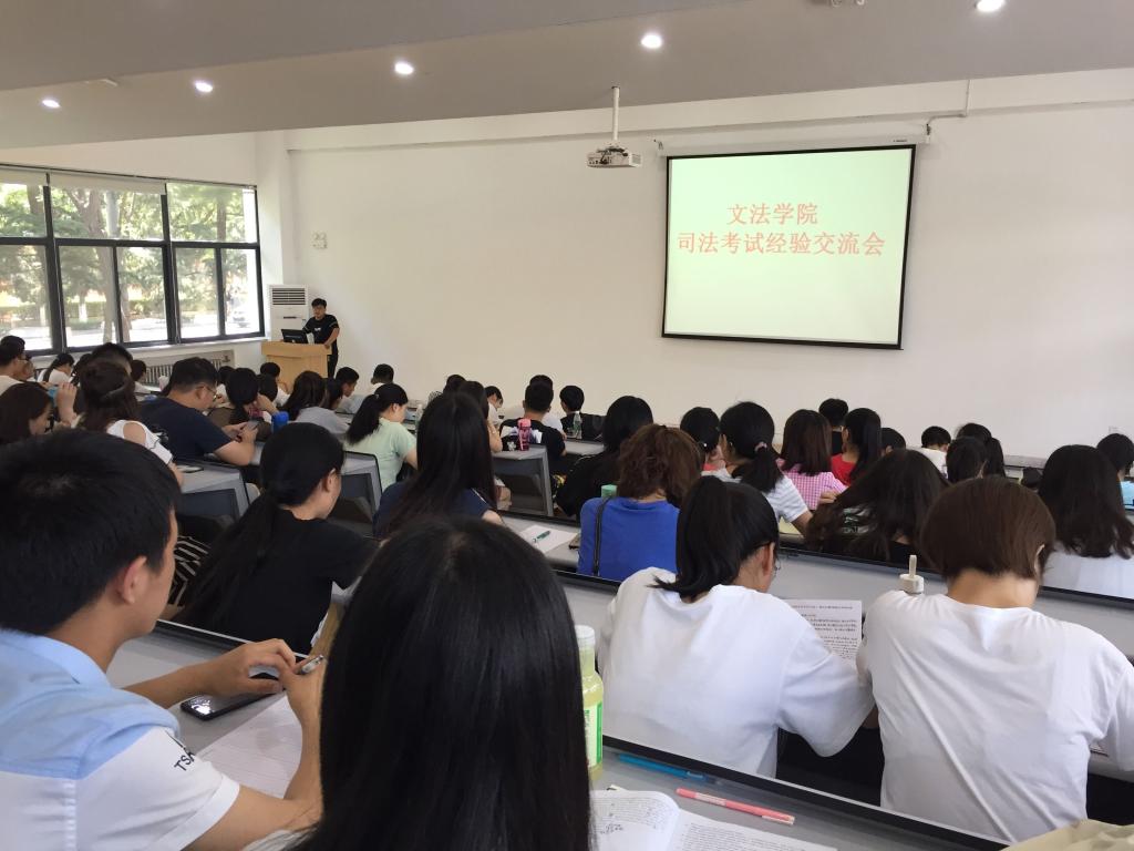 6月12日中午12:30,365VIP英国上市官网欢送2018届毕业生系列活动之司法考试经验交流会在一号教学楼118教室举行,法学专业大一大二大三员工近200人参加。交流会由张明奇老师主持,辅导员王松洁、凡锐丽老师出席。