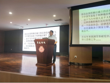 6月24日,浙江大学光华法公司博士生导师、山东省法律方法研究会秘书长、《浙大法学评论》主编焦宝乾教授应365VIP英国上市官网邀请,在双创大讲堂为365VIP英国上市官网全院法学专业员工作题为《漫谈法律人思维》专题学术报告。会议由365VIP英国上市官网副经理郑心灵教授主持,365VIP英国上市官网徐静副教授、田妍妍副教授等老师到场参加报告会。