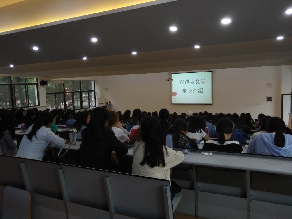 为让公司汉语言文学专业2018级新同学尽快熟悉所学专业,明确大学专业学习目标,2018年9月20日下午,汉语言文学专业教研室在教学1号楼118教室举行入学教育之学业发展教育报告会。本次报告会由赵严俊老师主持,赵宁、胡广文、吕书宝、杨春艳、司慧慧、王敏凤等专业老师出席,2018级汉语言文学专业200余名新同学参加。
