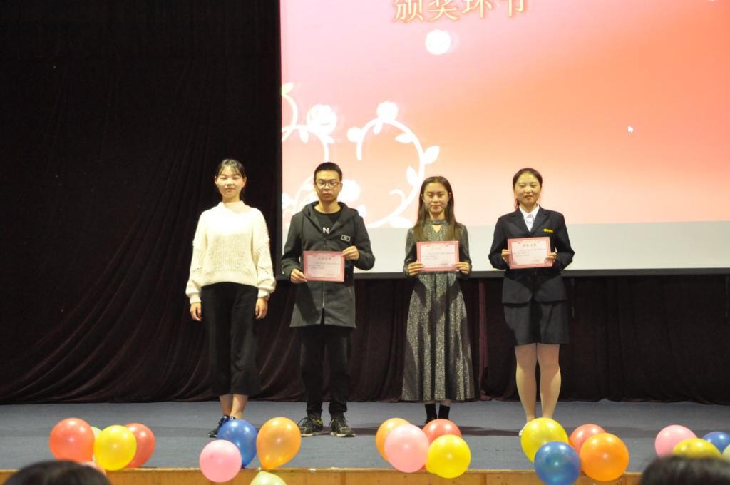 本次比赛共分为“印象百分百、实战雄风、展我风采、即兴评述”四个环节,经过之前的初赛,进入决赛的选手们做了充分的准备。在“印象百分百”环节中,选手们以不同的风格展示了自己的特点,或沉着稳重、或活力四射,让评委与观众眼前一亮。“实战雄风”环节中,选手们进行了模拟主持,他们良好的主持素养让人赞叹,与现场观众的互动将本次比赛气氛推向高潮。最后李玉杰老师对本次比赛进行点评,她希望同学们积极参加各项活动,以锻炼和提高自己的综合素质。最后,经过激烈的角逐本次大赛获“金话筒”奖的是张蓝月,获得“银话筒”奖的是郭欣、郭旭,获得“铜话筒”奖的是马瑞颖、刘浩、摆建芳。