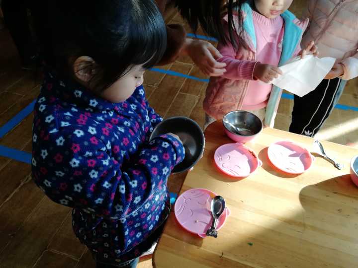 进餐是幼儿一日生活中不可缺少的环节,为培养幼儿良好的进餐习惯,促进幼儿的身心健康,本次活动以“文明就餐”为主题,由班长带队进入幼儿园。正值幼儿就餐时间,17级学前教育专业的同学们给孩子们讲解用餐时要节约粮食,不乱倒剩饭剩菜,倡导“光盘行动”;用餐后保持桌面和就坐地面整洁干净;主动自端餐盘;吃饭时不易大声喧哗;要礼貌排队领取饭菜。