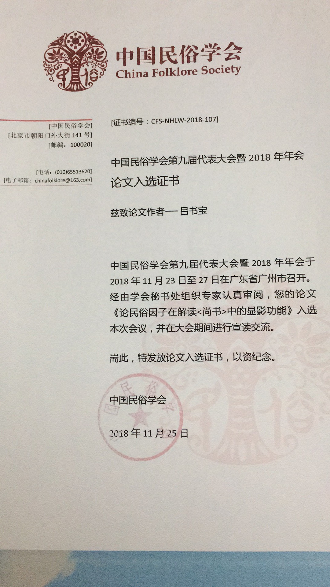 公司“豫闽台民俗文化研究所”所长、365VIP英国上市官网教授吕书宝博士,依托第七、第八届理事会理事身份、凭藉提交题为《论民俗因子在解读<尚书>中的显影功能》论文,当选具有上万人注册会员的参会代表,并在这次大会上当选为中国民俗学会第九届理事会理事,任期四年。吕书宝教授自2009年受邀参加全国民俗学会新疆天池西王母文化论坛、介入民俗学研究以来,至今已经连续三届入选理事会。