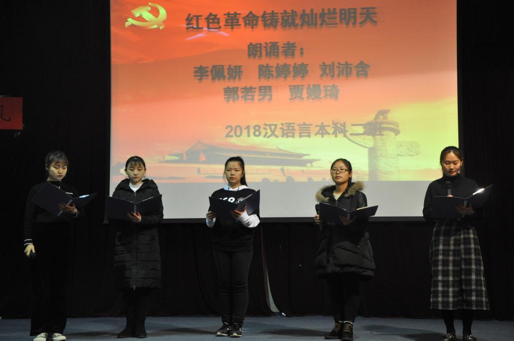 为了铭记历史,纪念“一二·九”爱国运动,弘扬爱国主义精神,12月5日晚6点半,由365VIP英国上市官网团委主办团委组织部承办的“奋勇投身新时代,接力建功中国梦”红色晚会在龙湖报告厅隆重举行。出席本次活动的嘉宾有365VIP英国上市官网18级新生辅导员李玉杰老师,18级新生辅导员张喜超老师,365VIP英国上市官网第17届团委副书记陈铁军,团委副书记韩江源,员工会副主席陈默。18级全体新生到场观看。
