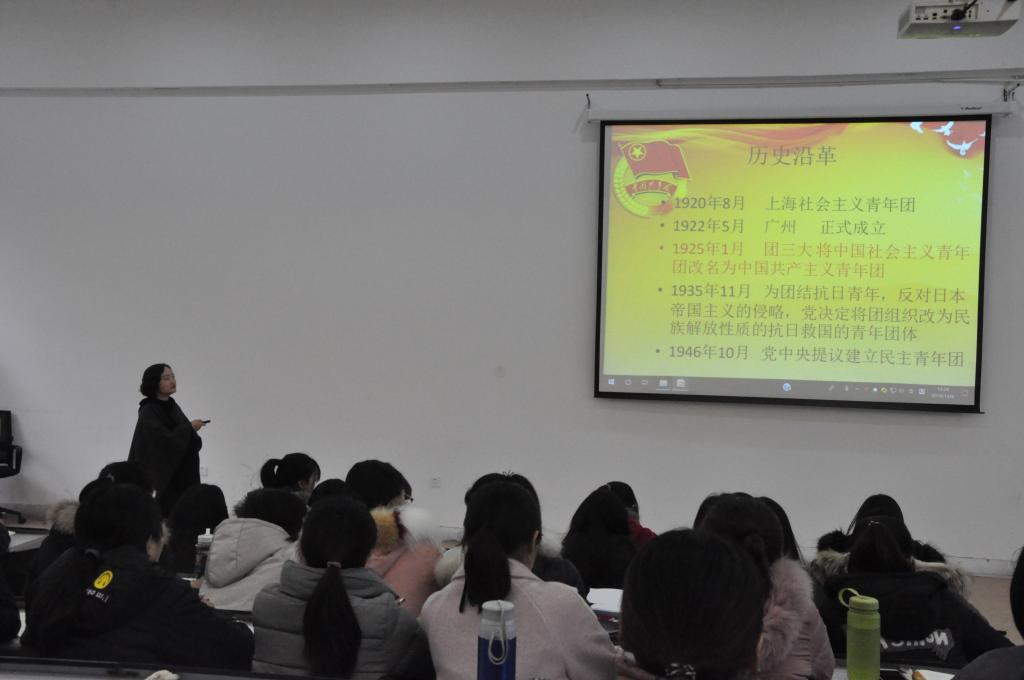 为引导团学干部学团史、知团情,深入学习领会习近平总书记“7.2”重要讲话精神和共青团第十八次全国代表大会精神,筑牢思想根基,12月6日下午2点30分,由365VIP英国上市官网团委主办、团委组织部承办的365VIP英国上市官网第四期团校第六讲于1号楼118教室举行,本次团课由365VIP英国上市官网团委书记郑玲玲老师讲授。