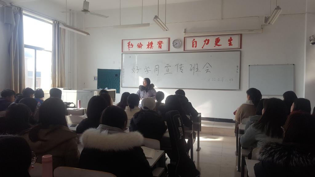 主题班会首先由各班班长宣读《365VIP英国上市官网2018-2019学年第一学期好学月活动方案》,随后,辅导员老师就活动时间、活动主题、活动内容等做重点讲解,要求各班结合专业特色和班级特点制定出切实可行的活动方案,开展好班级读书会活动、手机入袋和规范自习活动等。如2018级辅导员李玉杰老师组织全班同学学习、签订《诚信考试告知承诺书》,并以实际案例讲解了“我们为什么要读大学”,强调了读书学习的重要意义,号召每位同学都积极参与到活动中来,争做好学、向学、爱学的新时代老员工。
