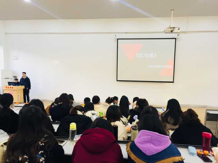 如2016级汉语言文学专业在一号教学楼118教室开展《红与黑》读书研讨会,邀请外国文学史专业赵宁教授和辅导员张明奇老师参加。读书会由班长吕沛林主持。活动刚开始,辅导员张明奇老师讲话,张老师说书本对个人的成长发展非常重要,作为当代老员工,既要“学习”,更要“读书”,把“读万卷书”和“行万里路”结合起来,提升自身综合素养。紧接着,同学们围绕着主人公于连的人物形象、于连式人物及事件、文学创作与时代背景、我们应怎样学习外国文学等四个问题来进行深入分析。同学们各抒己见,对于连人物形象从多层角度分析,会场一下活跃了起来;在讨论于连式人物及事件这一环节,同学们积极踊跃地发言,列举出了陈世美、祁同伟等反面典型人物,将活动氛围推向了高潮;在讨论文学创作与时代背景时,杜梦秋同学先从积极上进等方面肯定了于连式人物的有点,又从人生观、价值观、世界观三个维度强调了她对于连式人物的批评和批判。她“三观极正”且有正能量的发言受到了同学和老师的热烈掌声;在讨论我们应该如何学习外国文学环节,大家共同总结出了多读、多想、对比分析、老师指导四个要点。最后,赵宁老师讲话,赵老师说在学习外国文学时,我们不仅要从书中走出去,更要把在现实社会中领悟到东西再带回书中去,做到实践与书面知识的结合,做到“学思践悟”,读《红与黑》不仅要分析于连的形象,更要关注创作背景及作者的创作意图,司汤达通过于连“红”“黑”性格、形象的塑造,控诉了那样一个黑暗、残忍的时代,唤起人们对当下美好生活的珍惜。活动最后,王鼎乾同学演唱了一曲“匆匆那年”,在他歌声的陪衬下,全班同学与老师合影留念,活动圆满结束。