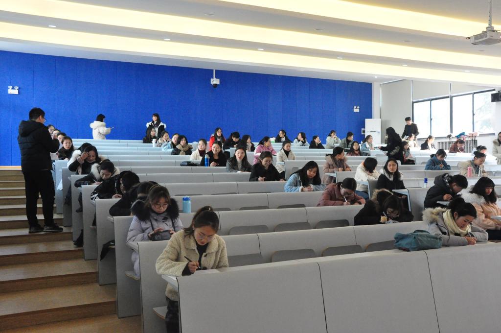 在团委副书记韩江源强调考试纪律后,本次考试正式开始。本次结业考试旨为考察本学期团课内容的学习,检验团员们对党团基础知识的掌握程度。考试过程中,考生们严遵考试纪律,奋笔疾书,充分体现了考生们对考试的认真态度;监考人员严格监督在场考生,认真负责,考场氛围紧张且严肃。考试结束后,监考人员收取试卷,考生有秩序的离开考场。