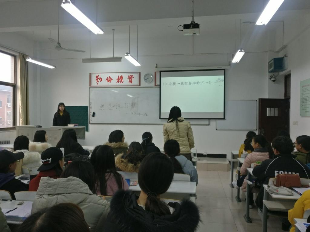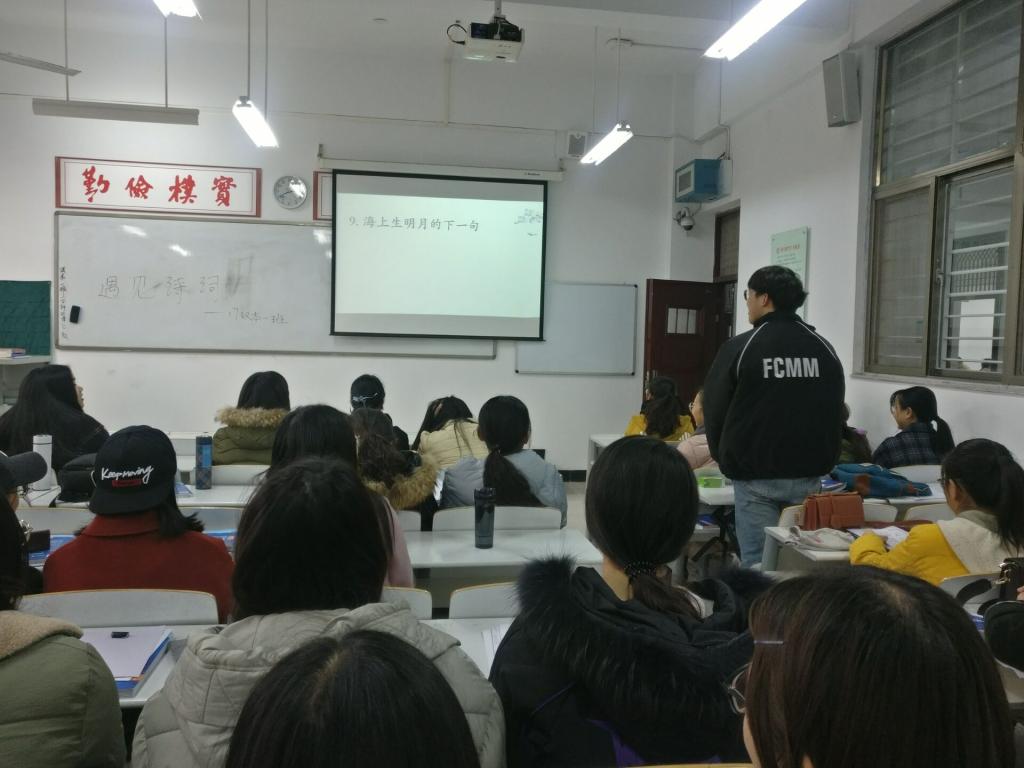 活动伊始,在17汉本一班班长常雅仙的带领下,同学们通过朗诵诗词,走进诗词的世界,去感受诗人们朴质、真切的情思。接着,常雅仙为大家介绍了诗的起源、发展,一起赏析了几篇脍炙人口的诗篇;随后,同学们踊跃上台分享自己喜欢的诗词,其中最令人印象深刻的是《游子吟》《黄鹤楼送孟浩然之广陵》《纳兰词》三首;最后,在讨论环节中,同学们针对诗词中的思想情感、诗中意境,氛围轻松幽默却又专业深刻,大家纷纷表示收获颇丰。