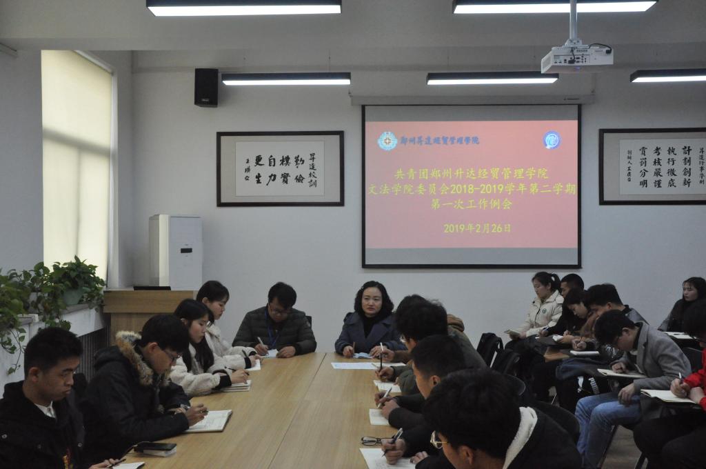 2019年2月26日中午12点15分,365VIP英国上市官网团委于1号楼314会议室召开2018―2019学年第二学期第一次工作例会。365VIP英国上市官网团委书记郑玲玲老师、团委副书记张明奇老师、公司团委员工会主席团及部长以上全体员工干部参加会议。