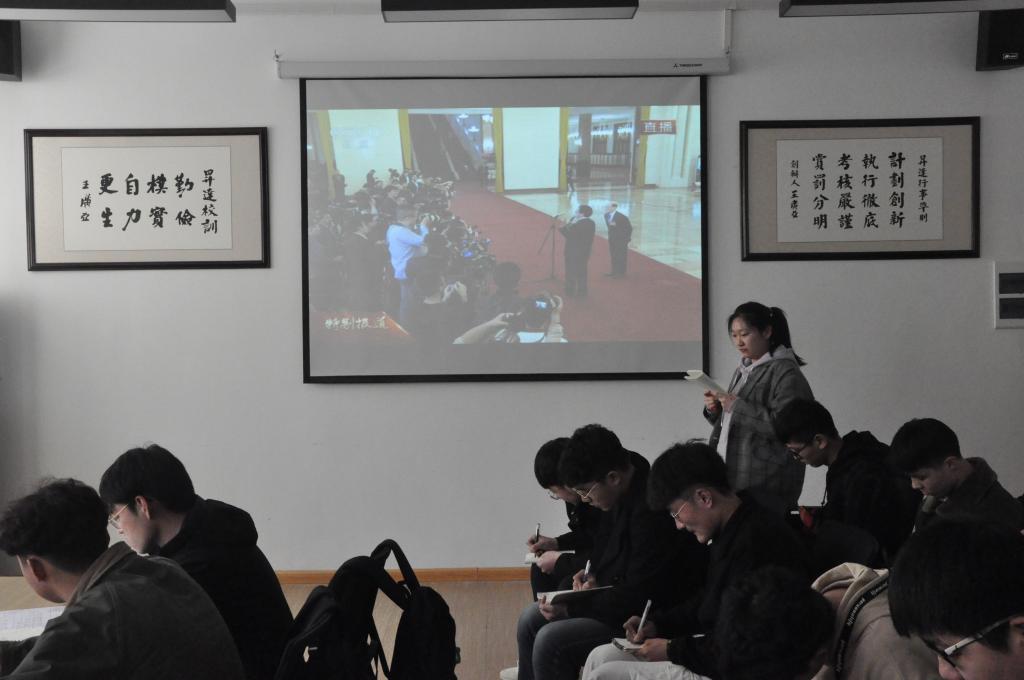 大家集中观看了第十三届全国人民代表大会第二次会议开幕会,聆听了李克强总理所作的政府工作报告,期间同学们认真做笔记,对有关国计民生的大事积极关注。