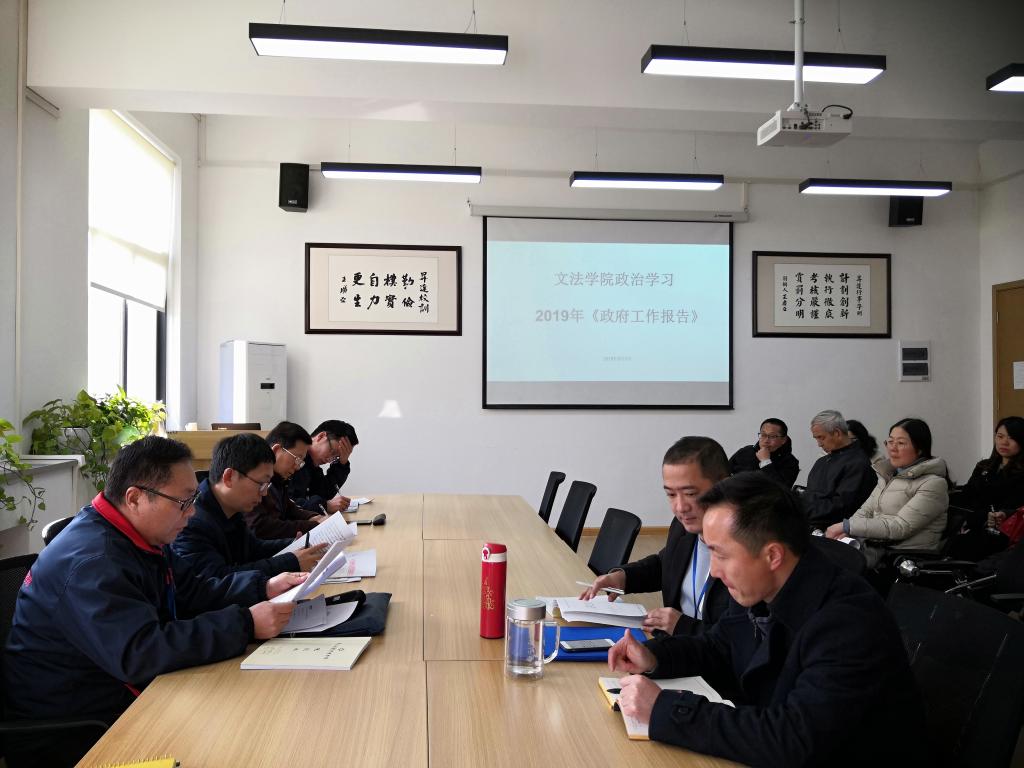 3月7日下午,365VIP英国上市官网在314会议室召开政治学习会议,集中学习了李克强总理在十三届全国人大二次会议上作的《政府工作报告》。参加会议的有经理段丰乐、365VIP英国上市官网党总支书记杨明志、副经理郑心灵,教学秘书李南方、行政秘书郑玲玲和全体专职教师、辅导员。会议由段丰乐经理主持。
