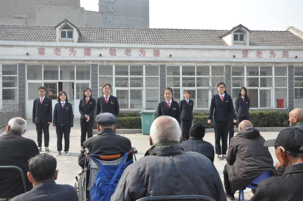 到达敬老院后,同学们送上为老人们准备的牛奶与面包,为老人们表演了精心准备的节目,动听的歌曲,诙谐的小品……引得老人们鼓掌称赞。表演结束后,同学们陪老人们聊天,为他们按摩,舒缓筋骨,老人们与同学们唠起家常,讲起自己的人生经历,鼓励同学们珍惜时光,好好学习,报效国家。现场一片其乐融融的景象。活动结束时,同学们与老人深情拥抱,老人眼中泪光闪闪,同学们依依不舍。