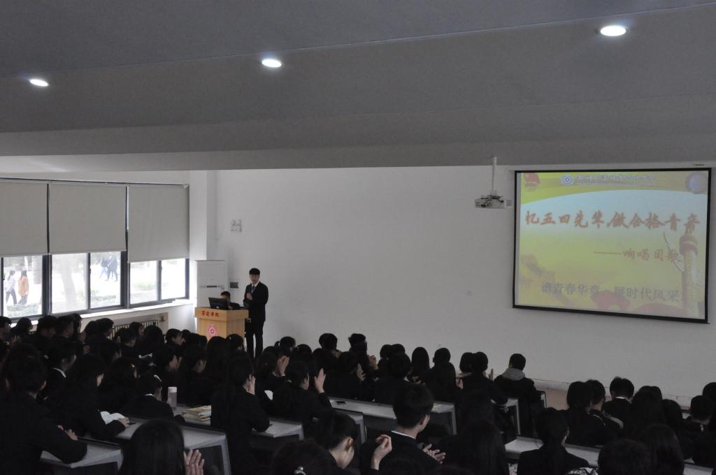 在主持人的介绍下,“用青春的旋律唱响团歌”活动拉开帷幕。一段以五四运动为素材的小视频讲述了那段激情燃烧的历史,随后活动进入“唱团歌”环节,同学们精神饱满,声音洪亮,用歌声来铭记历史。活动最后,由团委副书记陈铁军做总结,他带领大家一起回顾一百年前青年们豪情热血的壮举,号召大家学习五四精神、传承五四精神。