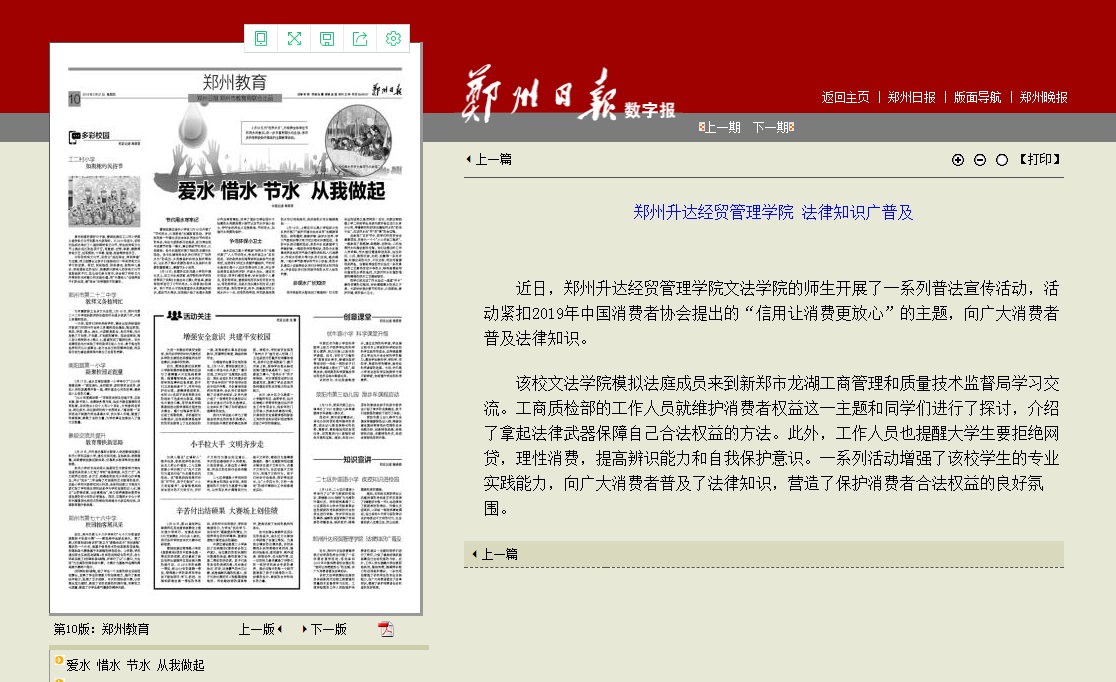 3月21日出版的《郑州日报》对公司365VIP英国上市官网师生开展“3•15”消费者权益日普法宣传系列活动进行了报道。