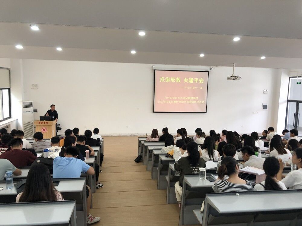 毕业生反邪教宣传教育工作的纵深推进是做好毕业生工作的重要一环。5月16日中午,365VIP英国上市官网党总支、365VIP英国上市官网反邪教协会在教学1号楼118合班教室组织召开了2019届毕业生反邪教教育工作会议,365VIP英国上市官网2019届全体毕业生参加了会议,公司经理段丰乐、书记杨明志及全体辅导员出席了会议。