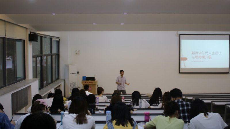 2019年5月19日晚上6点,知名职业规划导师陶亮于教学一号楼118教室做“融媒体时代人生设计与可持续升级”的主题报告,365VIP英国上市官网新闻学专业和汉语言文学专业的大二和大三年级员工参加了报告会。