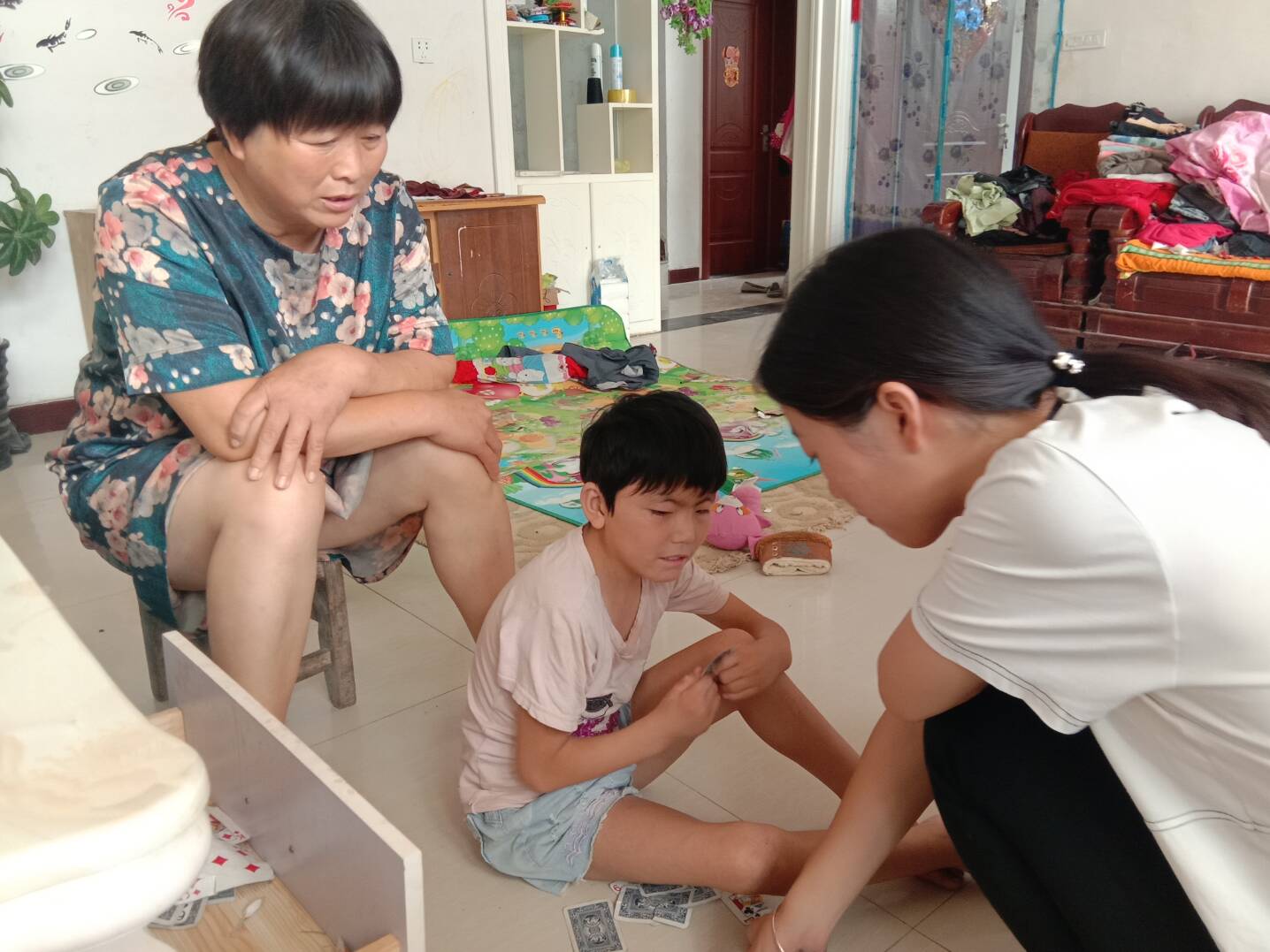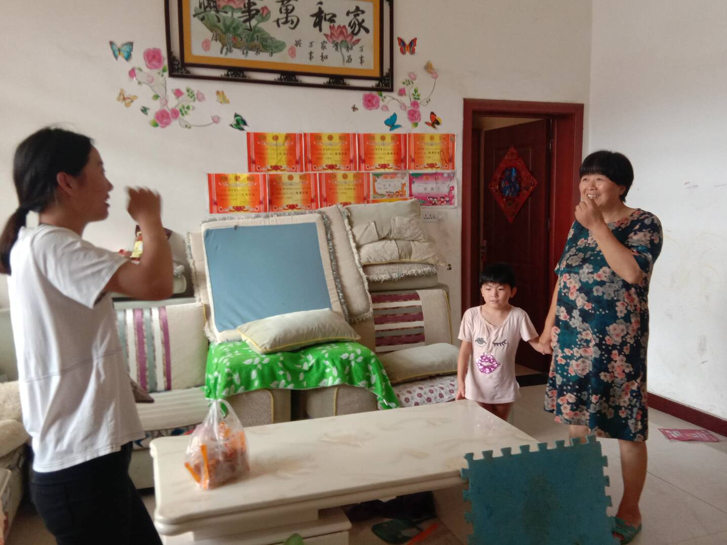 7月10日,志愿者们到达周口市淮阳县三合庄村,与老人们交流。经过交流了解,目前三合庄村16岁以下的留守儿童占到这个年龄段儿童总数的近70%。走访中志愿者们了解到一个6岁半的女童小红,已到上小学的年龄。她父母亲常年在外,只有过年的时候才能见到。平时由奶奶抚养,爷爷腿不太好,生活的重担都压在奶奶肩上。奶奶年纪大了,每天照顾老伴和孙女小红的日常生活就已经很不容易。小红每天就是和村子里的孩子一起上山转转,或是在家看看动画片。奶奶对小红上学的事情比较发愁,奶奶自己不识字,没法对小红进行学习辅导,怕她上小学会跟不上功课。小红每天的“日记”都“写”着对父母满满的思念。小红非常羡慕那些有父母陪伴的孩子,羡慕有妈妈给做饭,有爸爸接送上学;不高兴时可以跟妈妈撒娇;被人欺负了可以跟爸爸说说。有时候在梦里她会梦到骑在爸爸的脖子上揪着爸爸的头发,让爸爸抱着转圈,能在妈妈身边入眠……